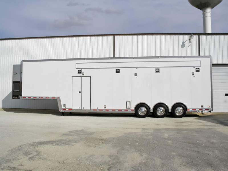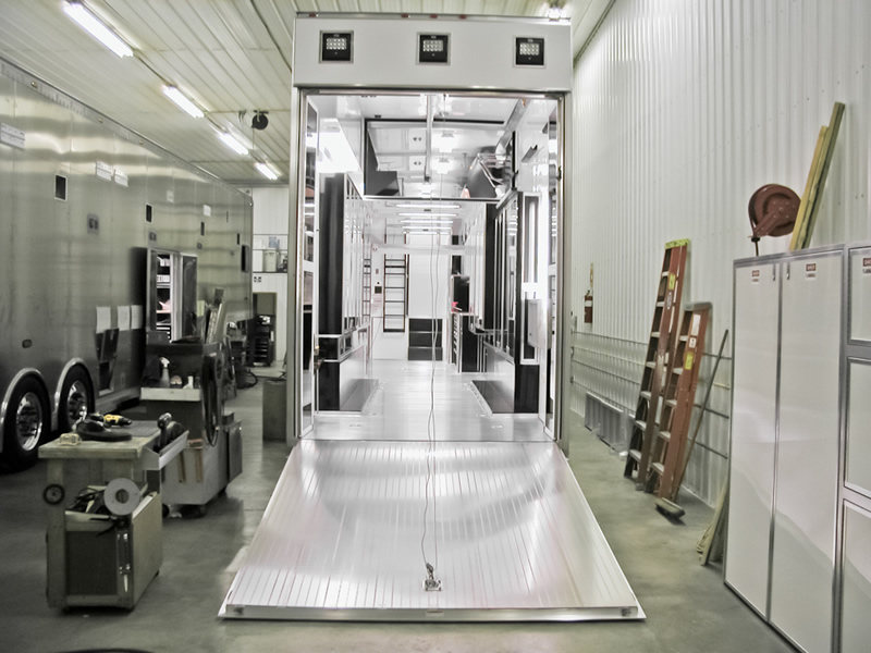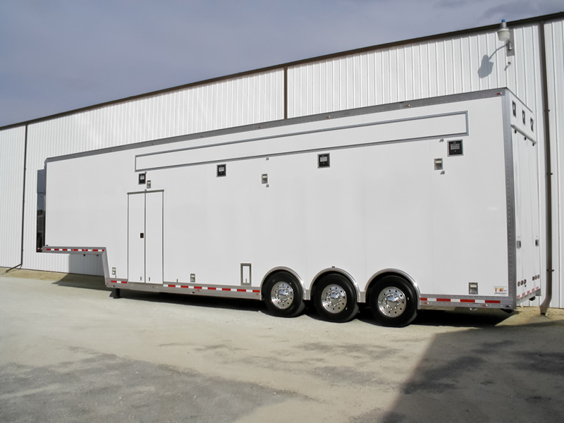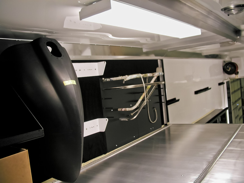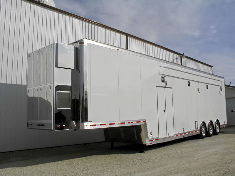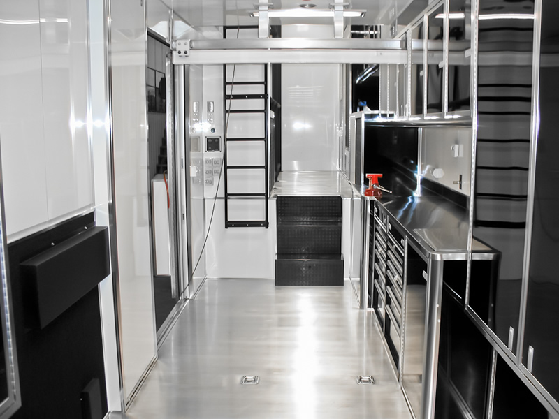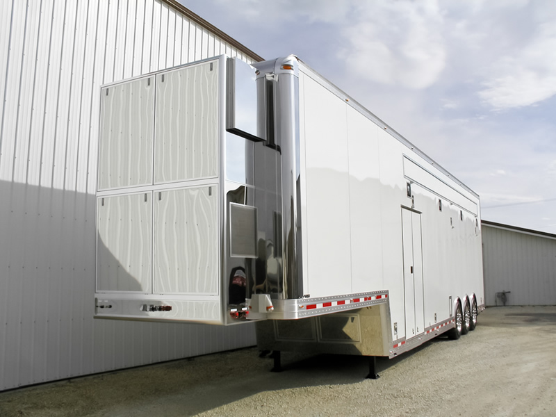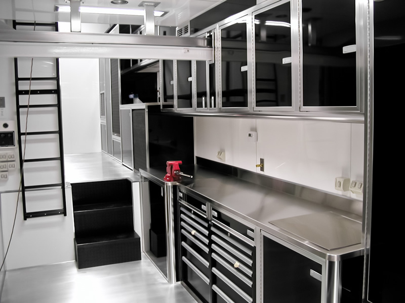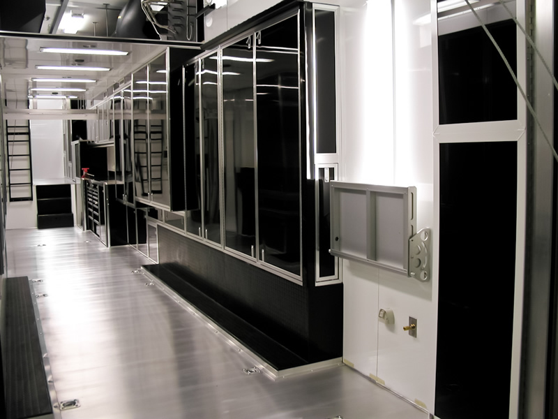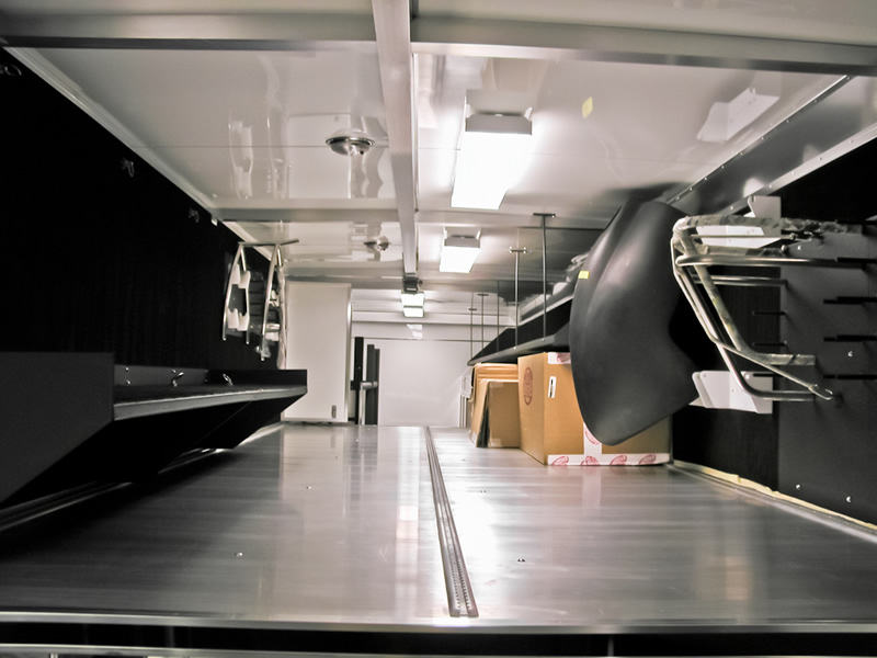 We can custom build your trailer to transport just about any motorsports vehicle that you might have. We also offer lounge options ranging from basic to advanced configurations with a variety of different layouts. Sleeping quarters, kitchen areas or meeting areas are also available as extra cost options. Most likely anything that you can dream up our talented workforce can forge into reality!