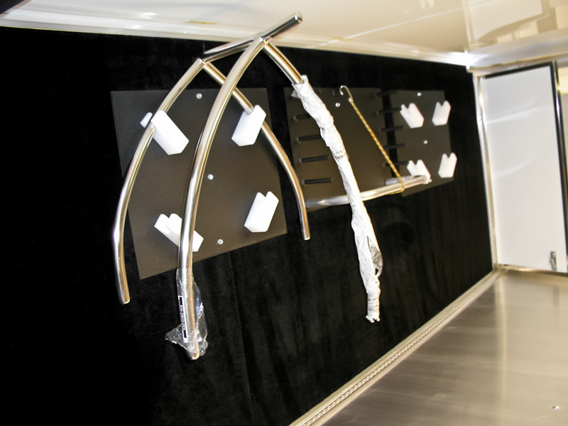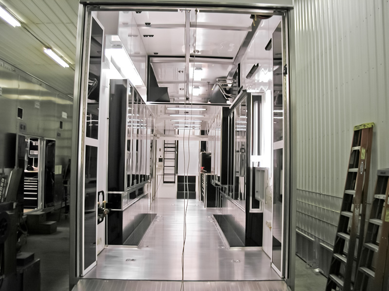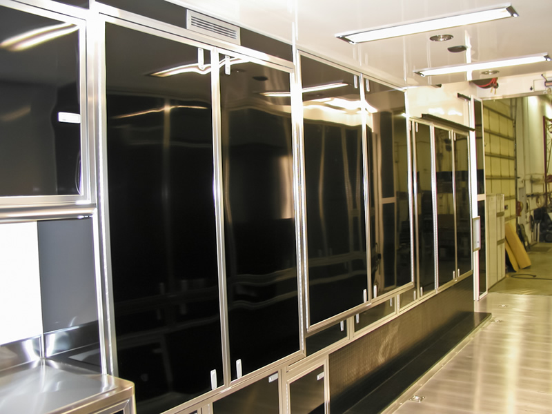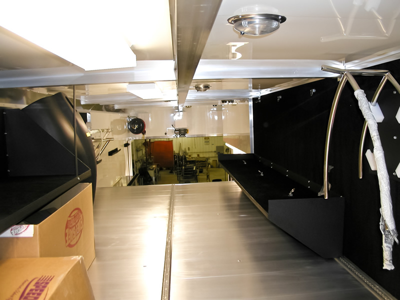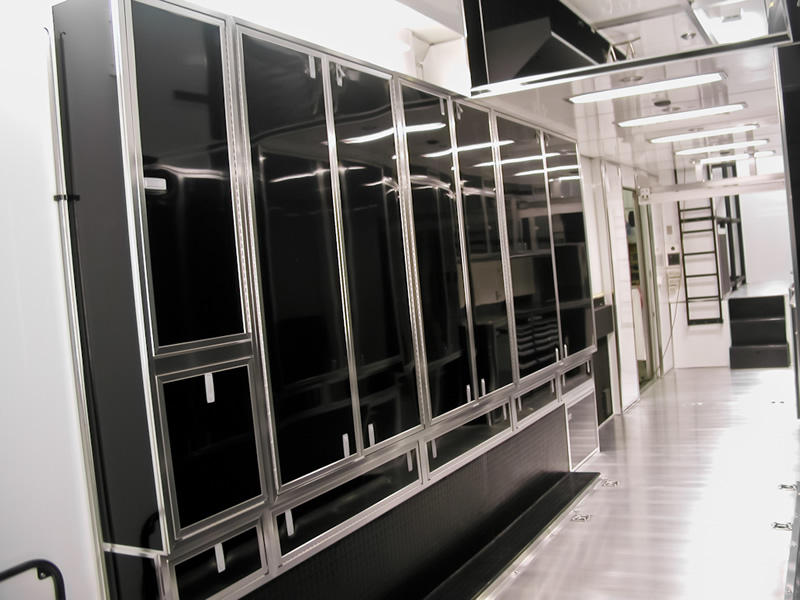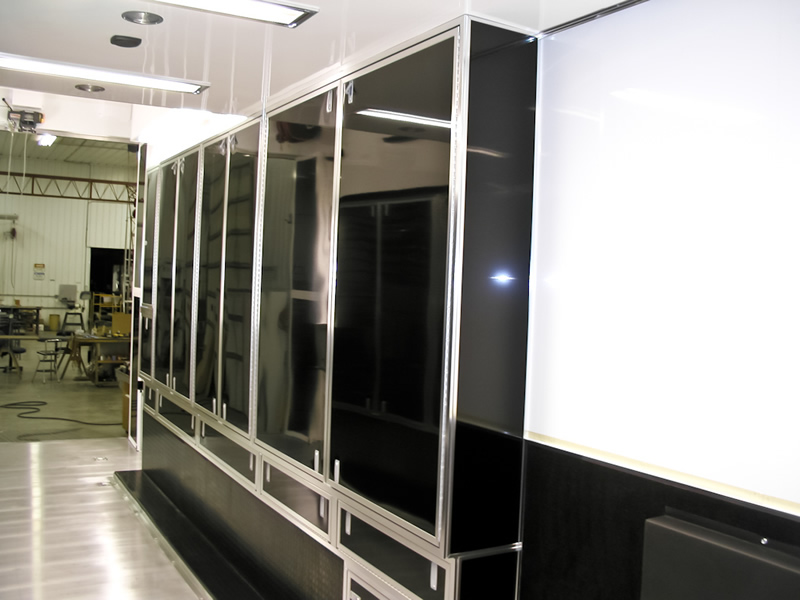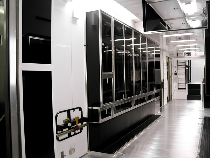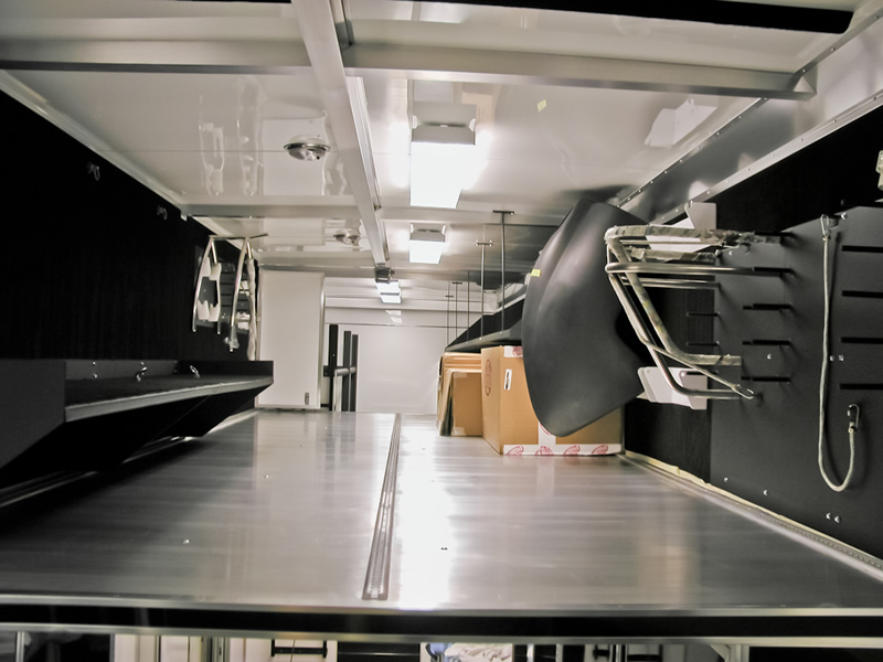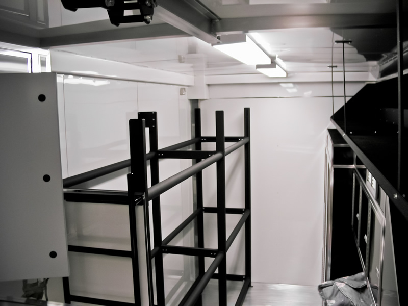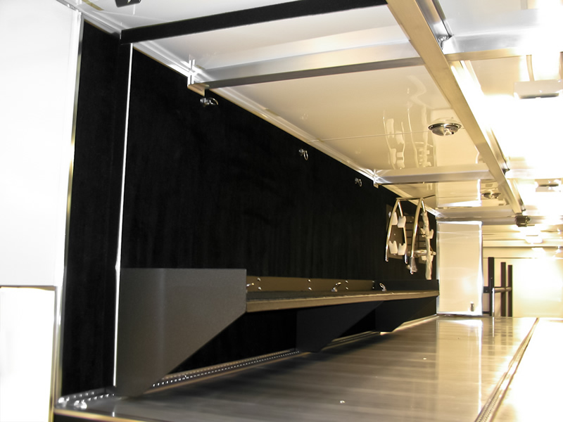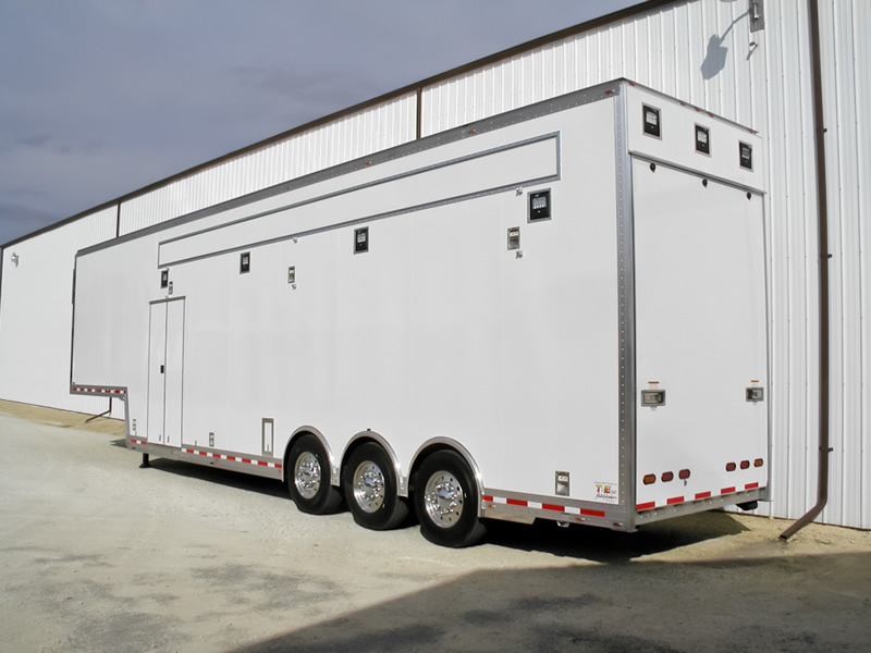 We can custom build your trailer to transport just about any motorsports vehicle that you might have. We also offer lounge options ranging from basic to advanced configurations with a variety of different layouts. Sleeping quarters, kitchen areas or meeting areas are also available as extra cost options. Most likely anything that you can dream up our talented workforce can forge into reality!