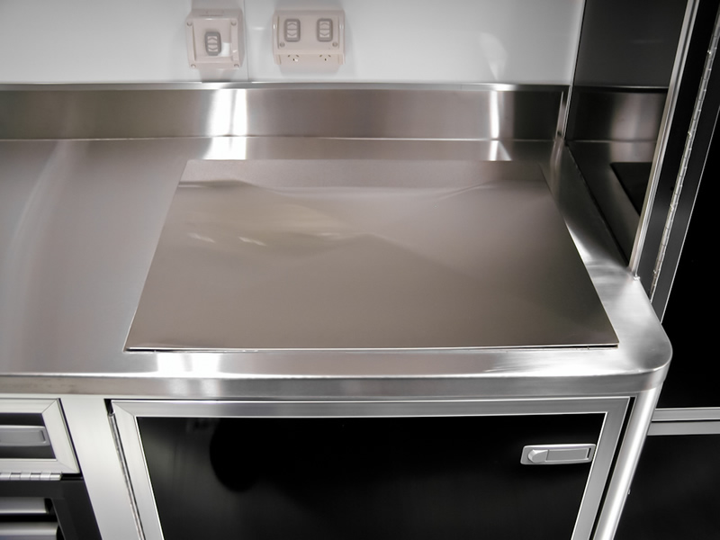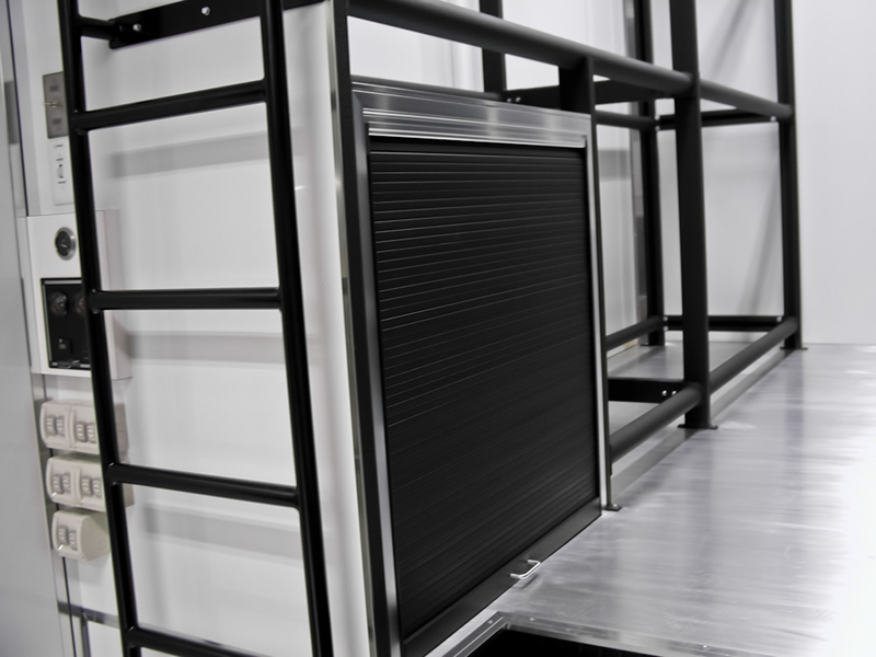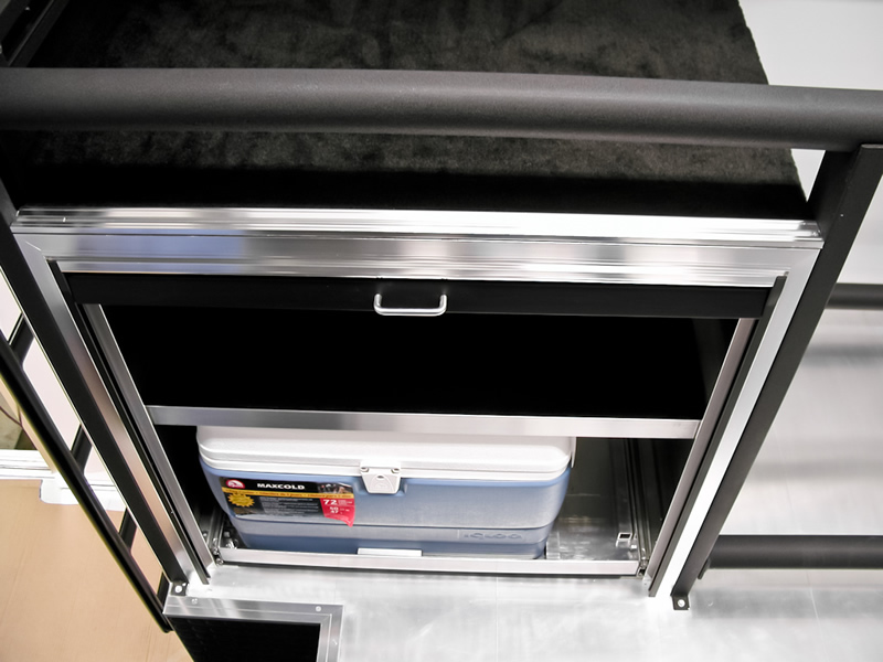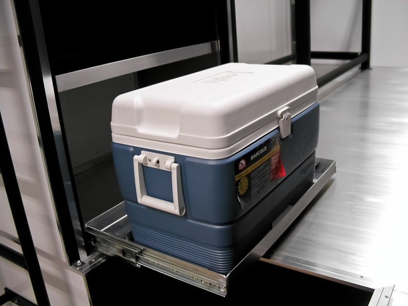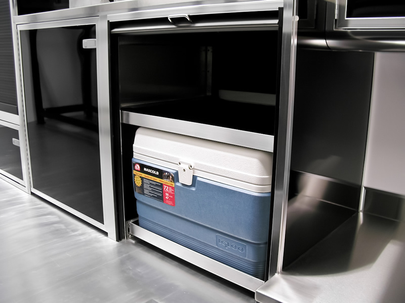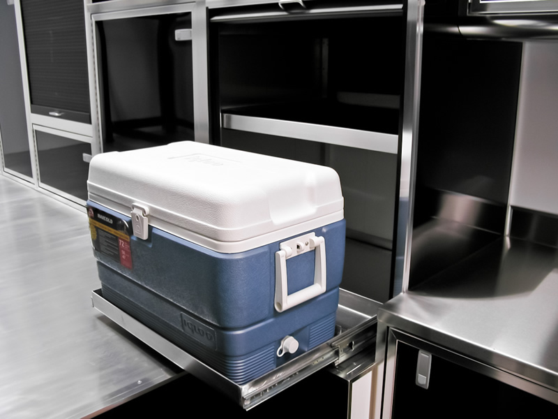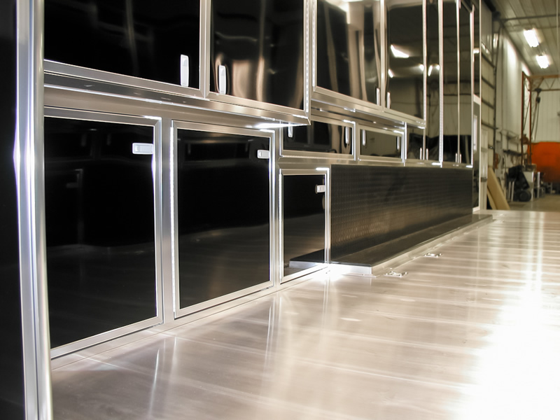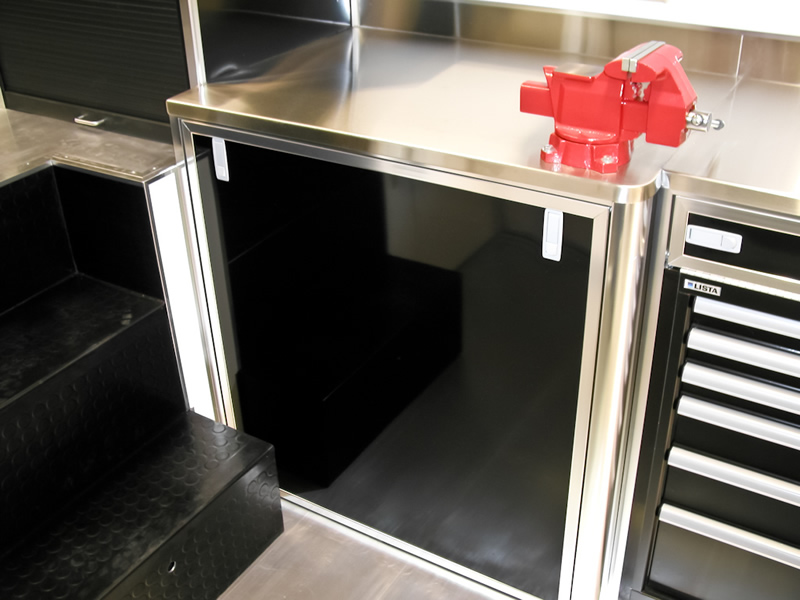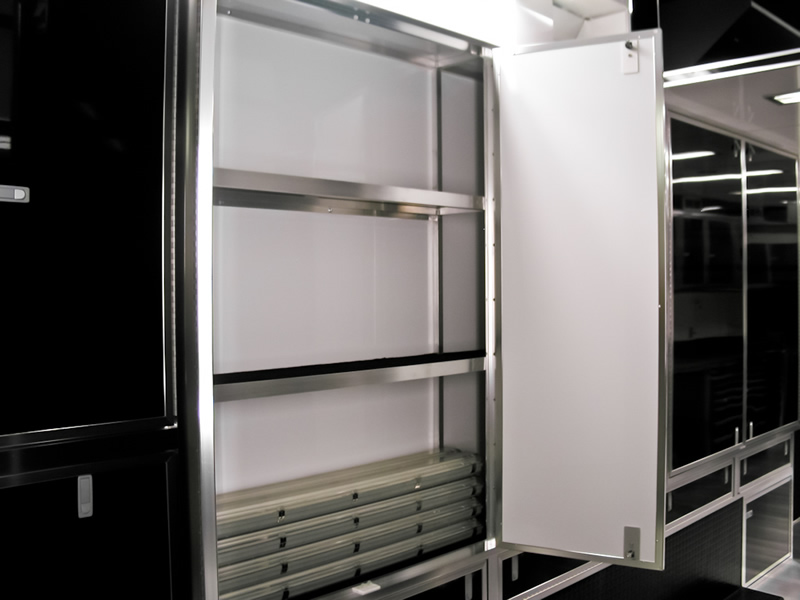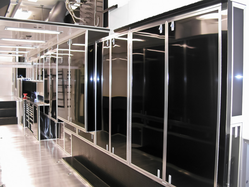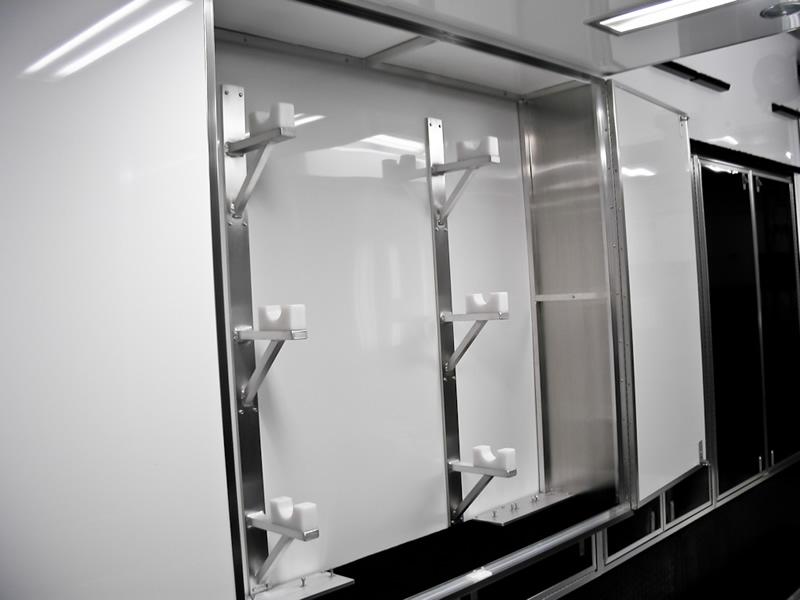 Note: Many of the storage cabinet options shown are also available on our smaller trailers. We welcome your personalized storage ideas and can custom build most anything you desire. |